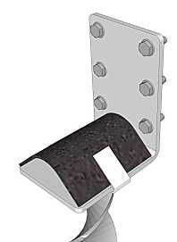 Gros plan. Raccord Visdeterre T505 et un ancrage  tête basse sur un abri de prairie.