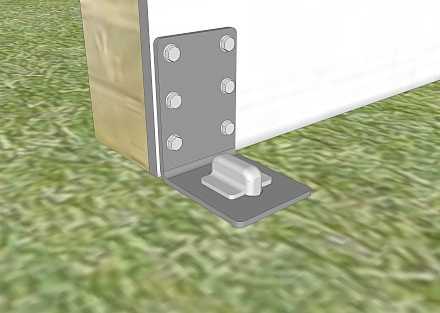 1/ Percez un trou dans le bois, puis en utilisant un boulon long, fixer le raccord. S'il est impossible de visser un écrou sur le boulon, percez un petit trou, puis utilisez une vis tire-fond M10x50.